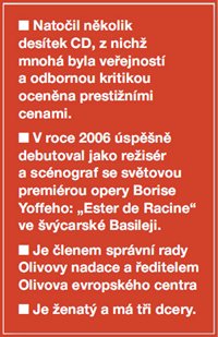 Domnívám se, že lidé od kumštu by měli vstupovat do politiky. Mají jistou uměleckou intuici. Člověk, který se zabývá hudbou, získá určitý šestý smysl, nadhled a také takzvaný „sitz fleisch“ – vytrvalost při práci. Pokud totiž chcete být úspěšní v hudbě, nestačí mít jen talent, ale musíte si výsledek trpělivě vydřít. Naučíte se soustředit, napnout k výsledku všechny síly. Hudebník si také musí umět vytvořit vlastní názor na skladbu, aby věděl, jak ji má uchopit. Díky tomu si umí udělat i vlastní názor na dění kolem nás. A mám ještě jednu výhodu. Pomáhá mi, že často pobývám v zahraničí. To mi umožňuje jistý nadhled, větší odstup, více informací a věci, které se kolem nás dějí, vidím o to kritičtěji, ale rád se sem celý život vracím.